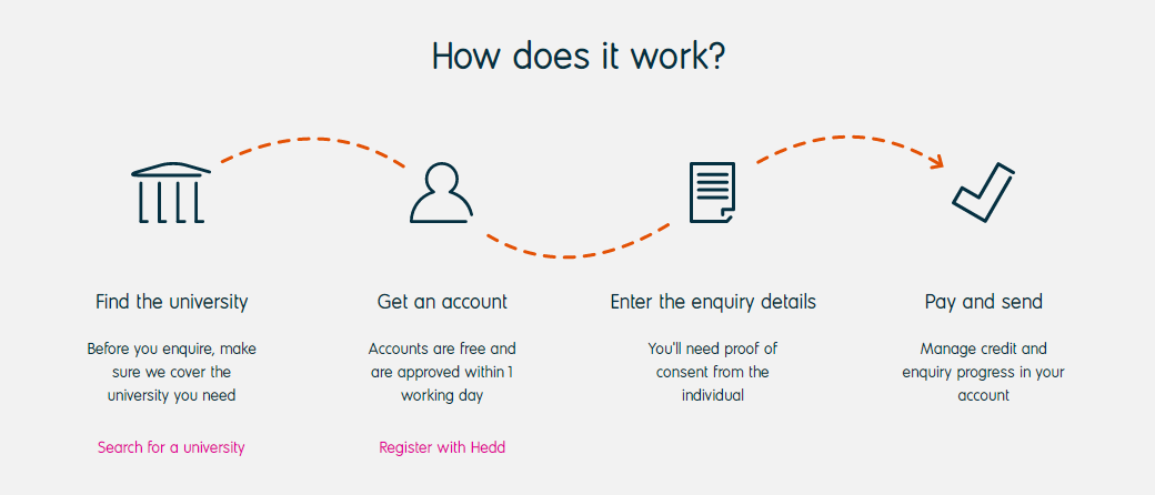 英国高等教育学历认证机构Higher Education Degree Datacheck,以下简称HEDD,是由英国政府主导的大学现代化基金(UMF)筹建,等同于中国的学信网,是为用人单位,机构,大学,大使馆和理事会,验证应聘者学历真伪的平台,通过HEDD,可向大学核实该学员是否在读在册或已毕业,以及学员就读期间的奖学金及获奖情况。
