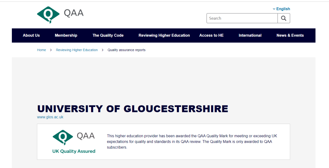 格鲁斯特大学是英国第一个符合ISO14001环境管理体系标准的大学,被评为全英排名第一的最可持续发展大学。同时,格鲁斯特大学在中华人民共和国教育部教育涉外监管网名单之列,受中国教育部认可。